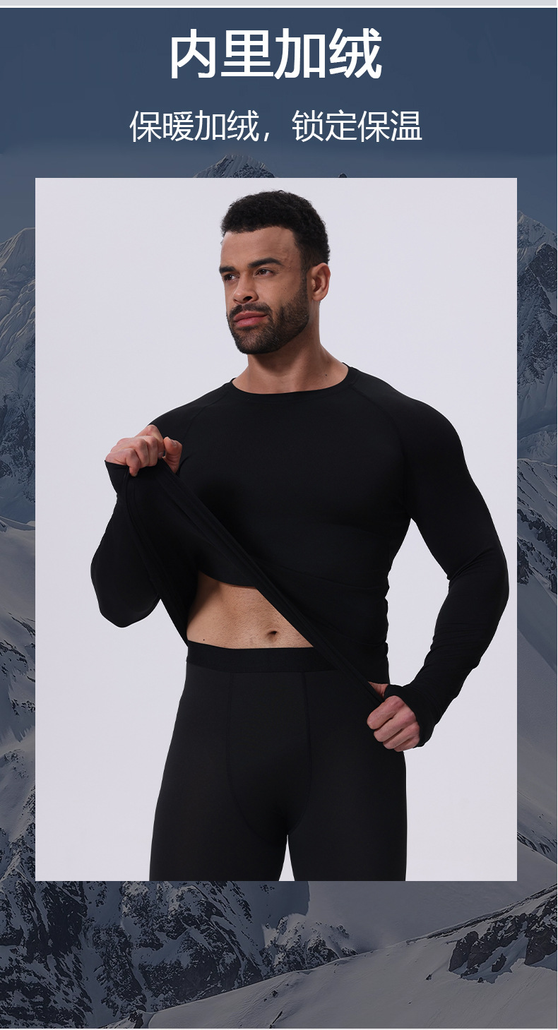 保暖男士套装紧身加绒保暖秋衣秋裤户外跑步运动速干健身衣服秋冬