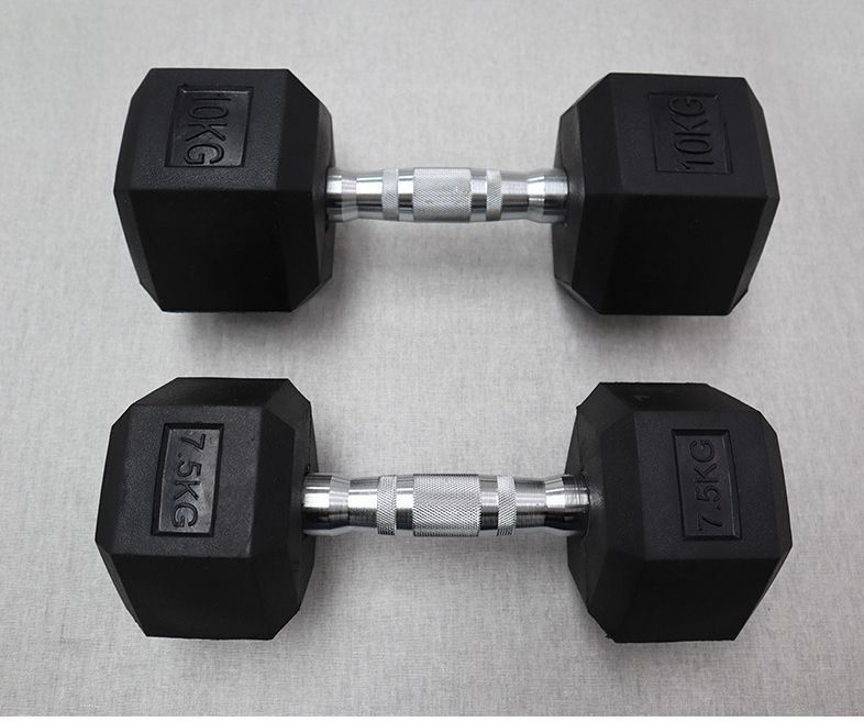 六角包胶哑铃男士健身家用实心铸铁2.5/5/7.5/10公斤