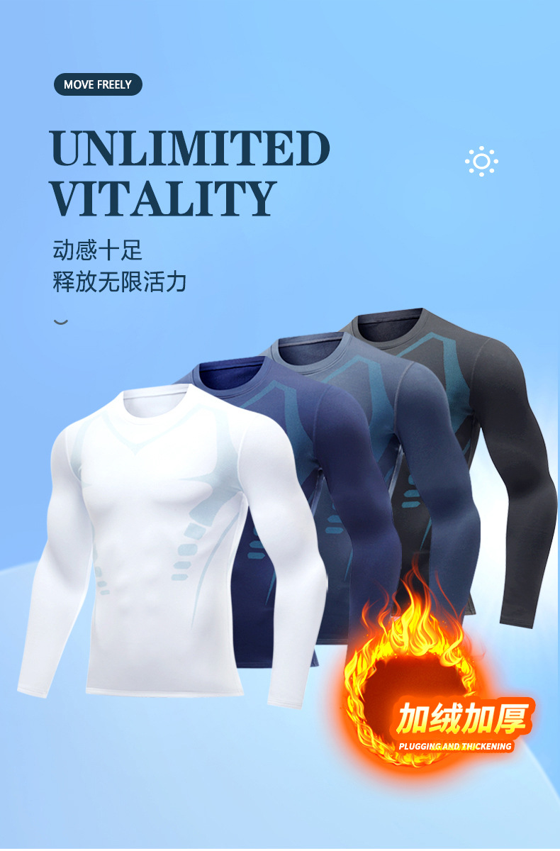 丝格图跨境半高领健身服男冬季加绒保暖运动紧身衣训练跑步打底衣