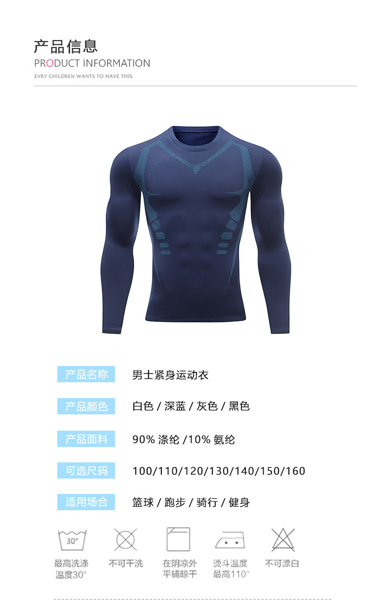 健身服高弹紧身衣长袖套装成人儿童速干跑步运动打底保暖训练服