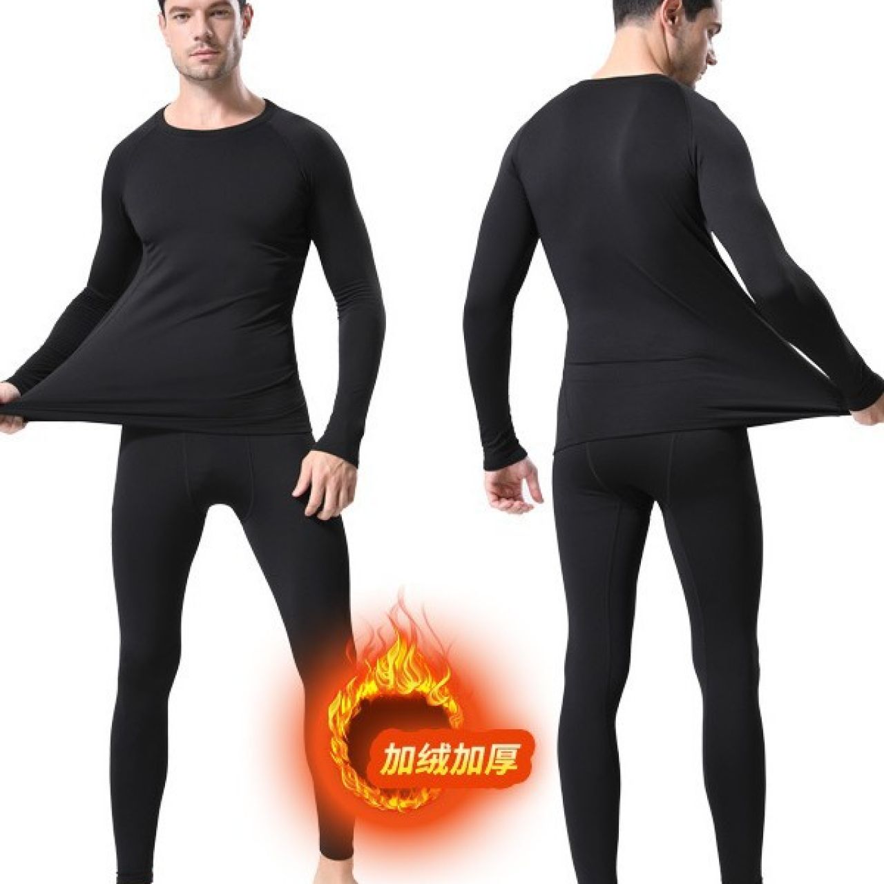 保暖男士套装紧身加绒保暖秋衣秋裤户外跑步运动速干健身衣服秋冬