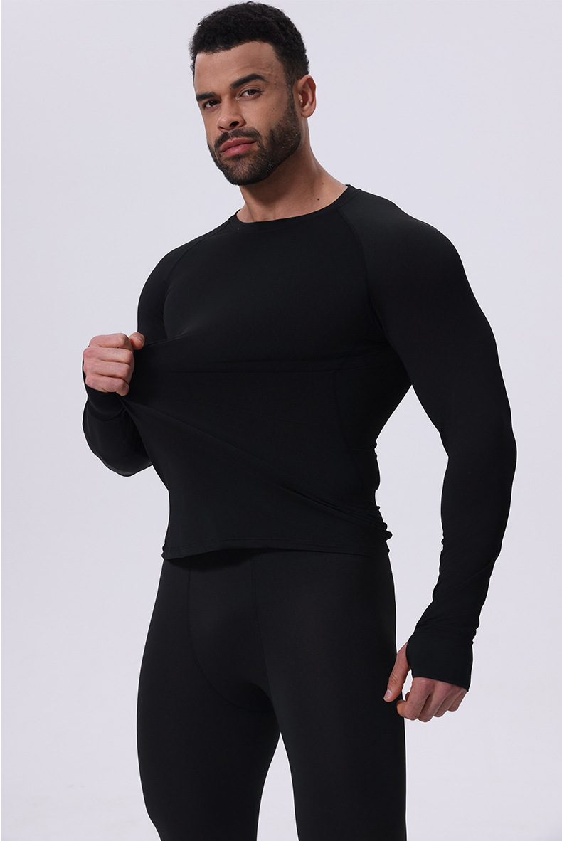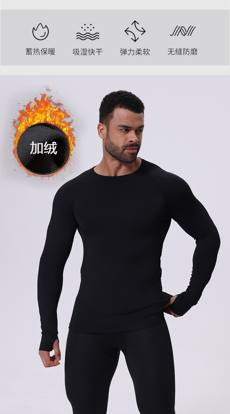 秋冬季加绒保暖长袖透气高弹紧身衣篮球训练服男士健身速干运动服